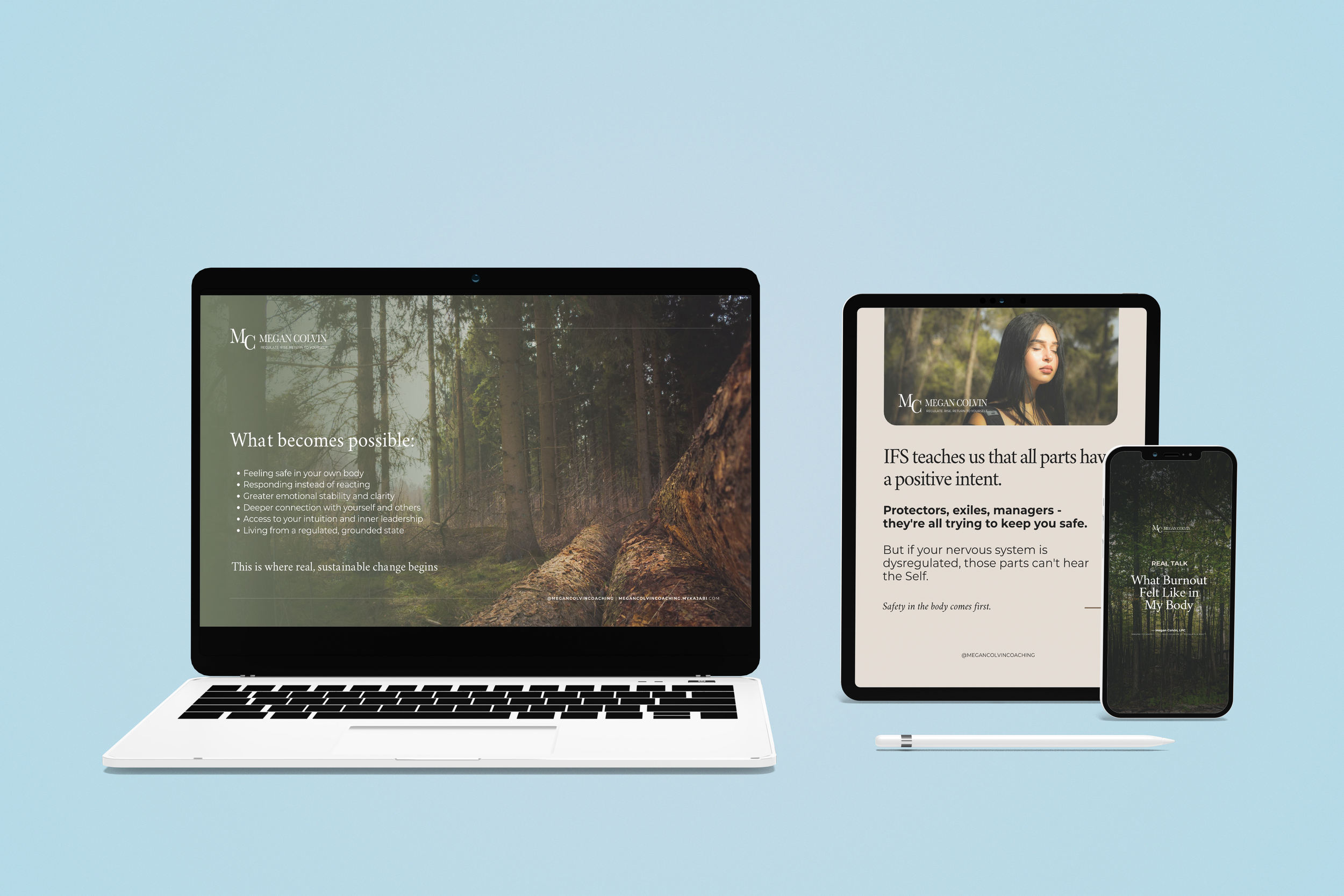 A done for you system: refined brand identity + reusable templates, built fast and loaded into Canva.